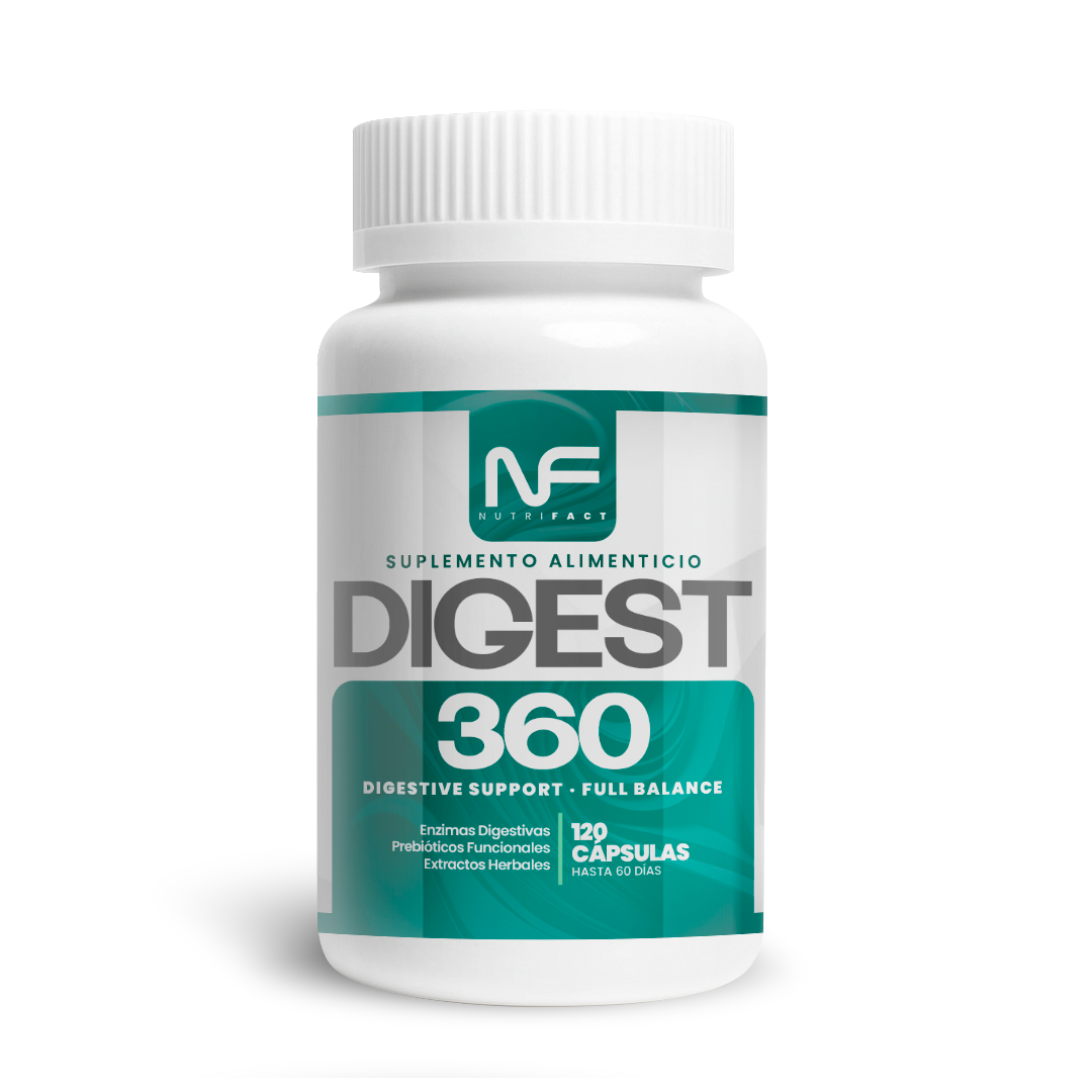 Digest 360 es tu aliado natural para aliviar la pesadez, mejorar la digestión y sentirte liviano cada día. Con enzimas digestivas, probióticos y extractos vegetales.