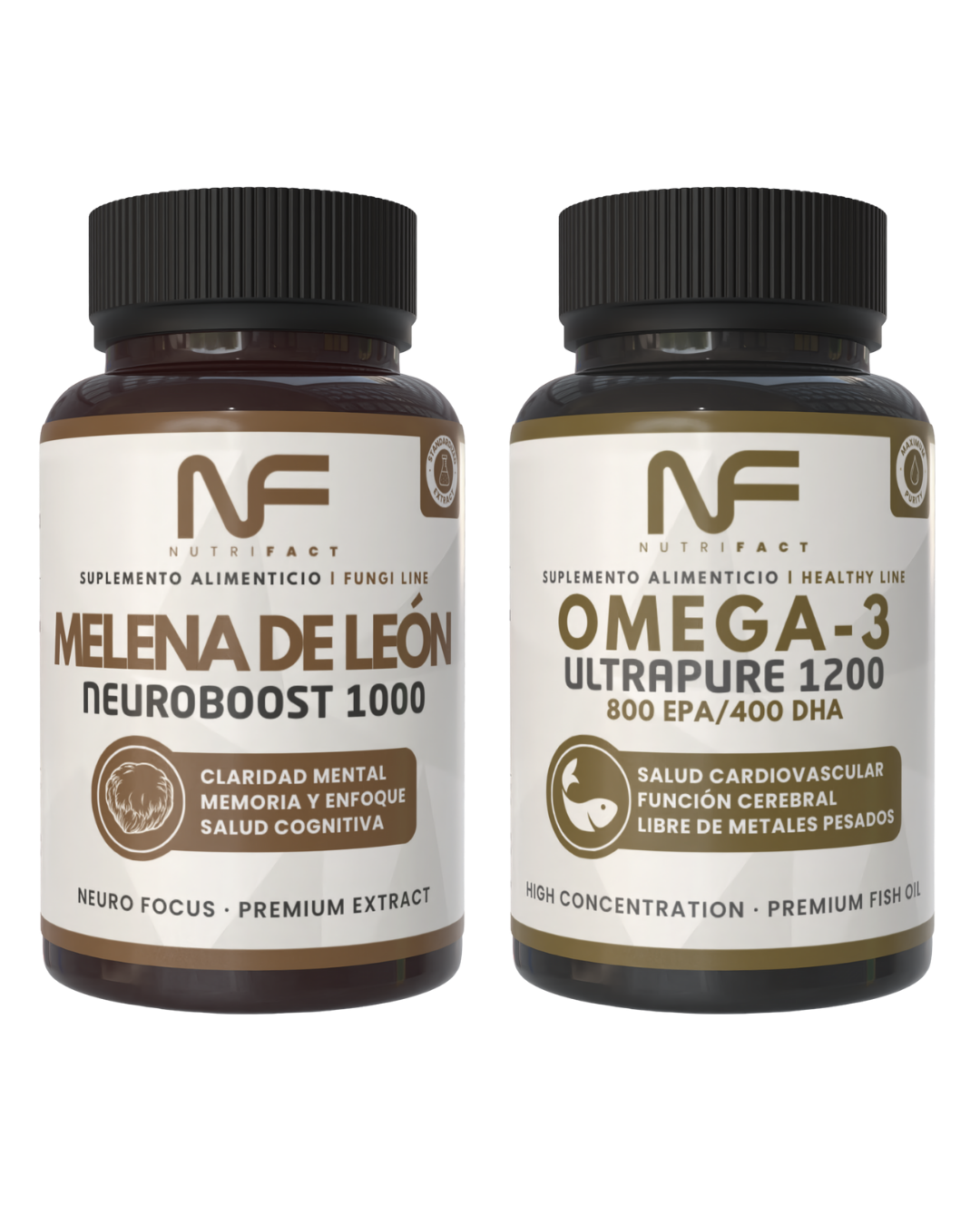 Este pack combina Melena de León Neuroboost 1000 y Omega-3 UltraPure 1200, una dupla diseñada para potenciar el enfoque, la memoria y la función cerebral, apoyando un rendimiento cognitivo más claro y estable a lo largo del día.